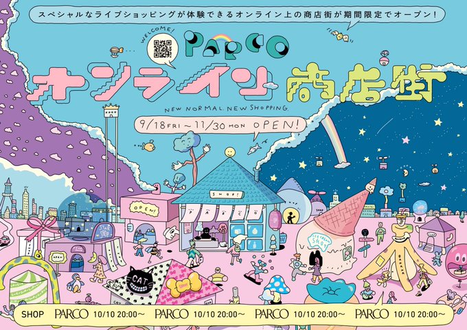 58 690 PARCOの秋キャンペーン、オンライン商店街のイラストを担当しました🙌ADはAYONDの佐々木俊さん。タイトルなどイラストに合わせてデザインされてます。すごい… 20/09/28 15:59