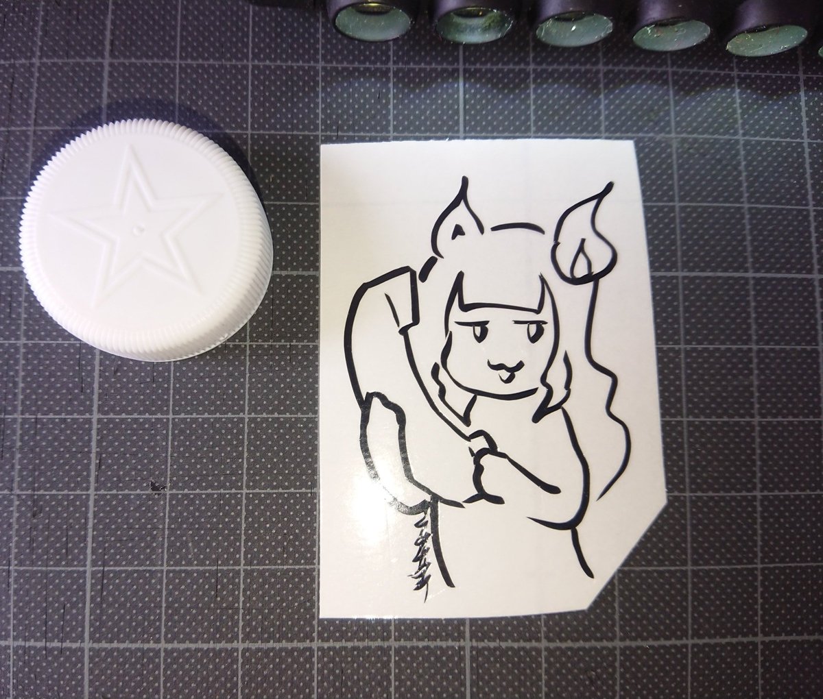 看谷にぃあちゃんが描いたらぐがきをA4サイズのカッティングステッカーにしました。 製作時間は2時間半でした。 今晩は1Mbpsの回線で並走バトルをがんばって5窓します。 #二期生壺おじ並走バトル #にぃあーと