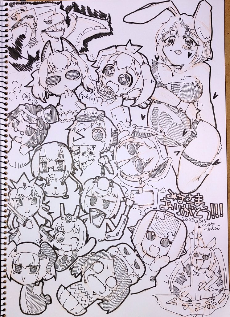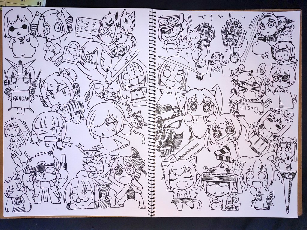 後半戦。29人かな?しめて57名ぶんほど描かせていただけました。 疲れが溜まってるのかミョーなカットが増えてるのがおもしろい。 僅か数名至りませんでしたが、激烈に頭痛くなってきたので今回はご容赦ください! twitter.com/ishikawakurand…