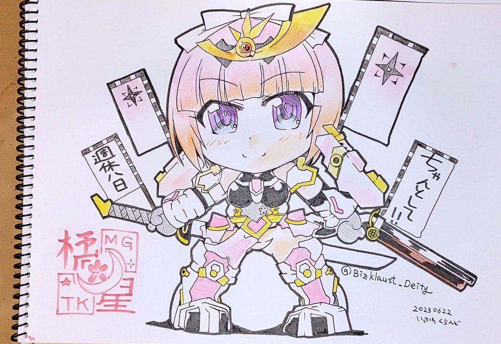 描けるのかと申したか ならばこのいしかわ描かねばならぬ!! というわけで個人的な練習も込みで星花さんをお借りしました! 旗指物がユニークで目を引きますし、白基調のキャラはアナログ屋には嬉しい配色です(笑) twitter.com/Bizklaust_Deit…