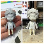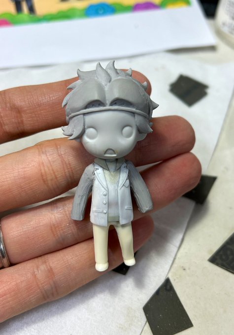 一紀ちょい仕上げが残ってるけど完成しました🙆♀️✨ への字口にし過ぎたから後でちょびっと直そうかな🌞個人的には好みなんだけど🤔 画像だとあんま分からないけど後ろ頭をちょびっとマッシュルームぽいシルエットになるようにボリュームと長さを変えました! 明日から颯砂君🏃🏃♂️ #はばたき学園模型部