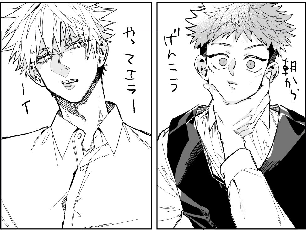 パロだとゆうじくんに大人げなくガチギレするごじょーさんが描けるのか楽しいな~ってなりました 中身呪専の27歳児なのでなんとなく刈り上げなしごじょーさんです