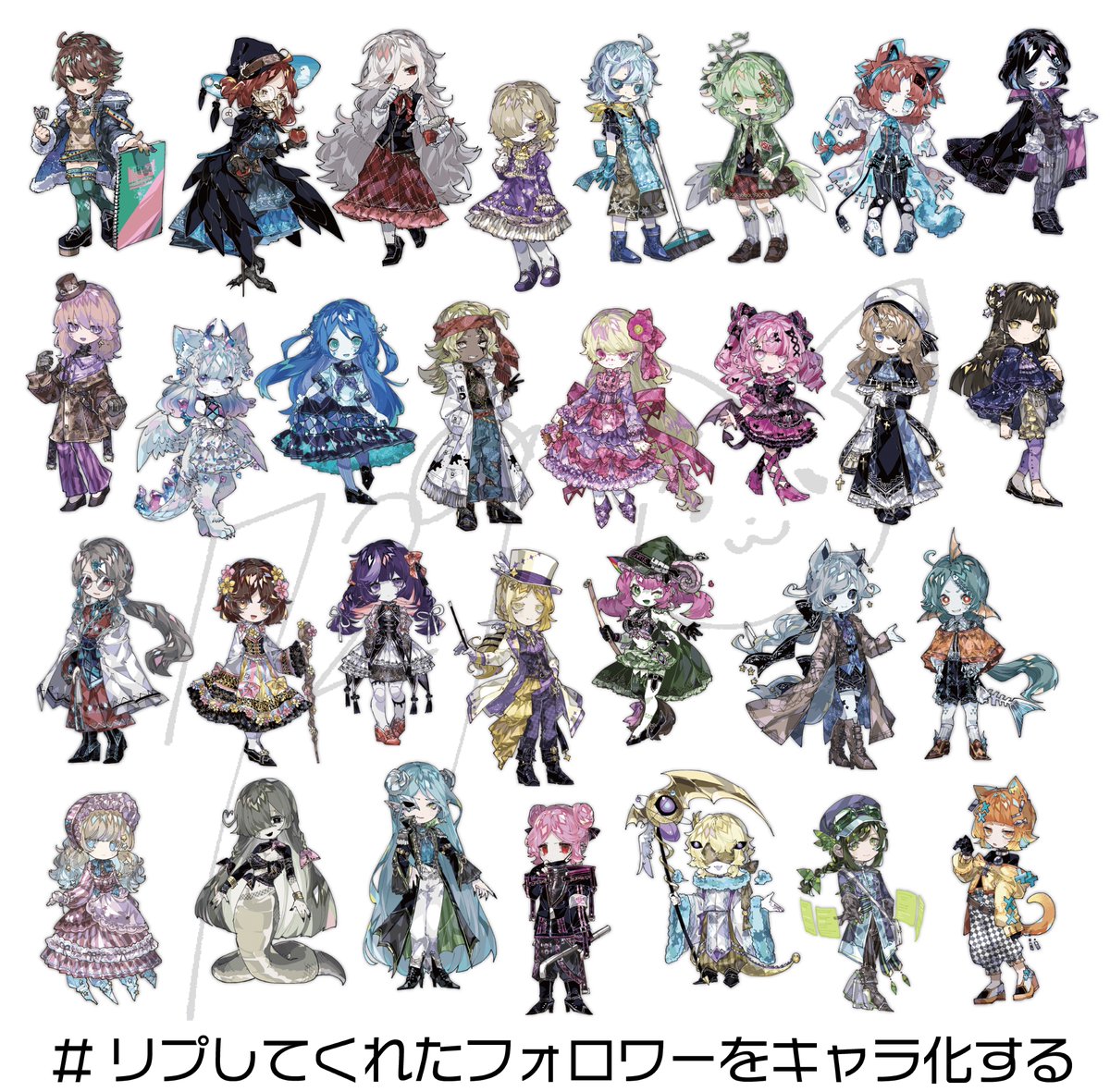 #リプしてくれたフォロワーをキャラ化する 出すのが今更になってしまいましたが、水面下で進めておりました 総勢三十人です 参加してくださったフォロワーの皆さんありがとうございました🥰🥰 支部で一人ひとり見れます→pixiv.net/artworks/10255…