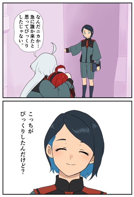 寝起きのニカチュチュ。 早起きすぎるスレッタに引く二人。 #水星の魔女 #G_Witch