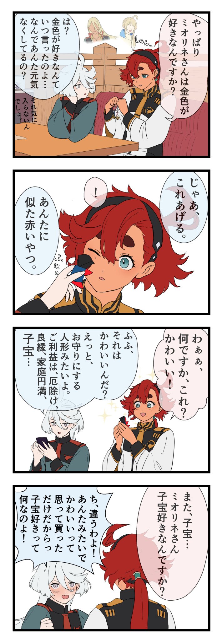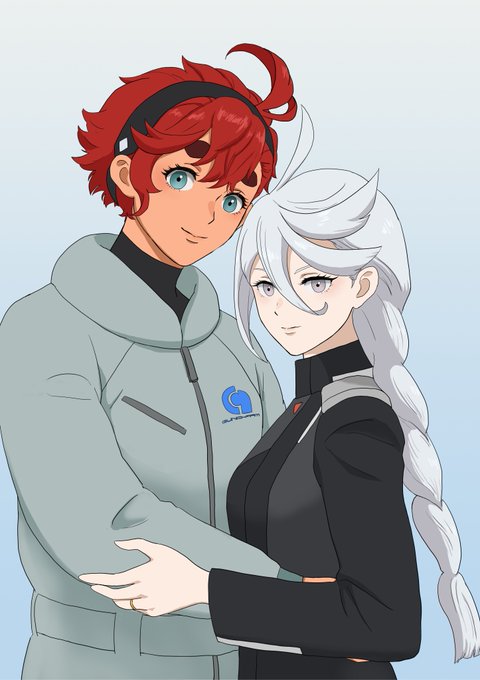 スレッタが右側で、ミオリネさんが左側にいるほうが髪の収まりがいい。逆だと頬を寄せると髪が刺さる。#水星の魔女 #G_Witch