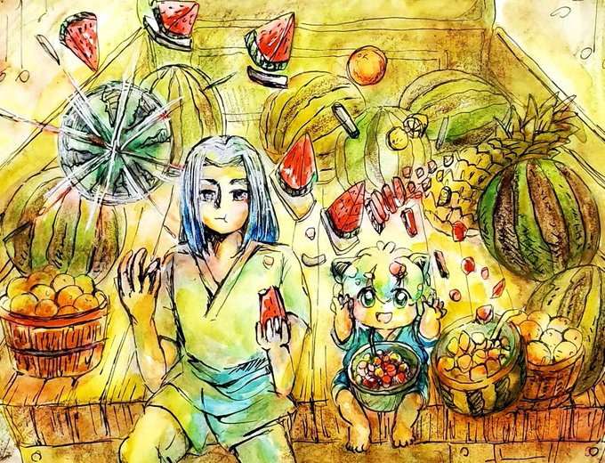 スイカ🍉トラックで運ばれる師弟 #水彩 #羅小黑戰記 #羅小黒戦記