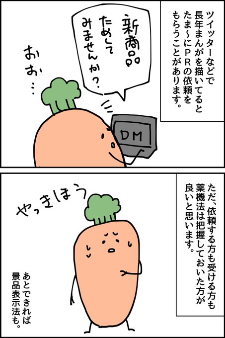 624 481 フォロワーさんに漫画描きさんが結構いるので、もしDMなどで医薬品、医薬部外品、医療機器や化粧品関係のPR依頼が来たら注意した方がいいことをざっくり書きました。 23/02/17 16:13