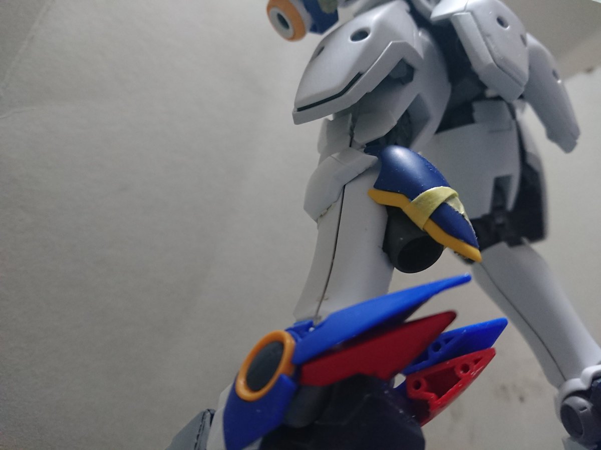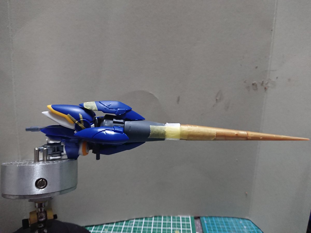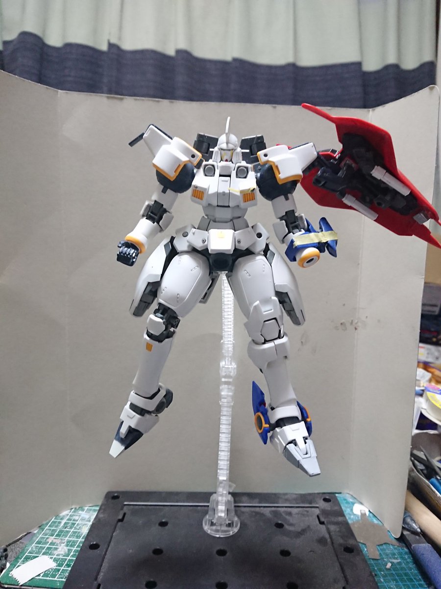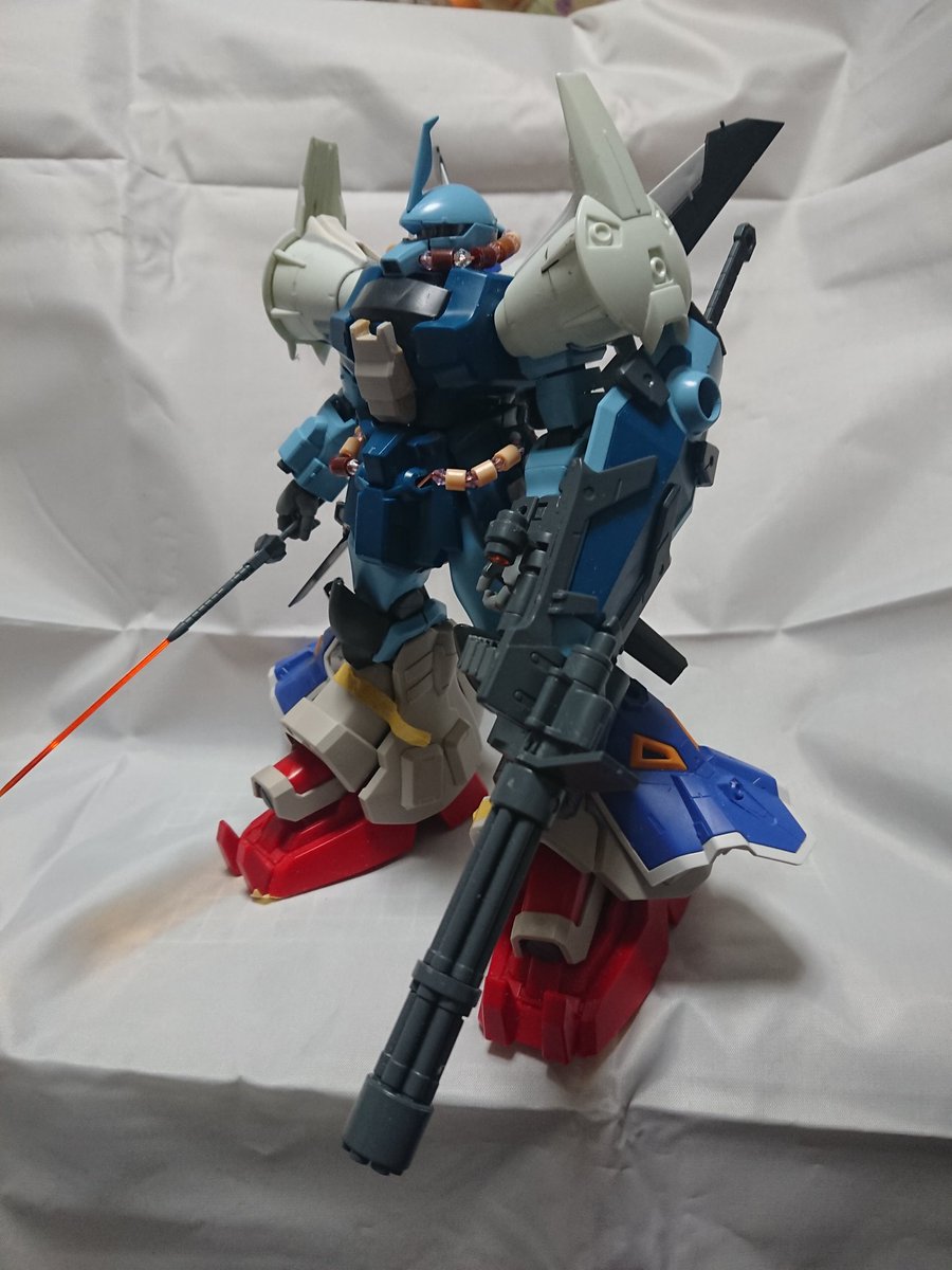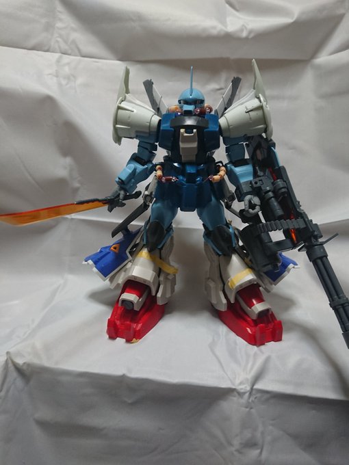 MGグフフライトタイプ 手間のかかる工作はほぼ終わったので記念(?)に一周。 まだ切り貼りするとこはありますが(-_-;) もうちょっとしたらヤスリがけタイムです… #グフフライトタイプ #ガンプラ好きと繋がりたい #ロボマニ