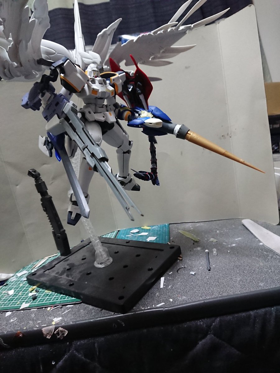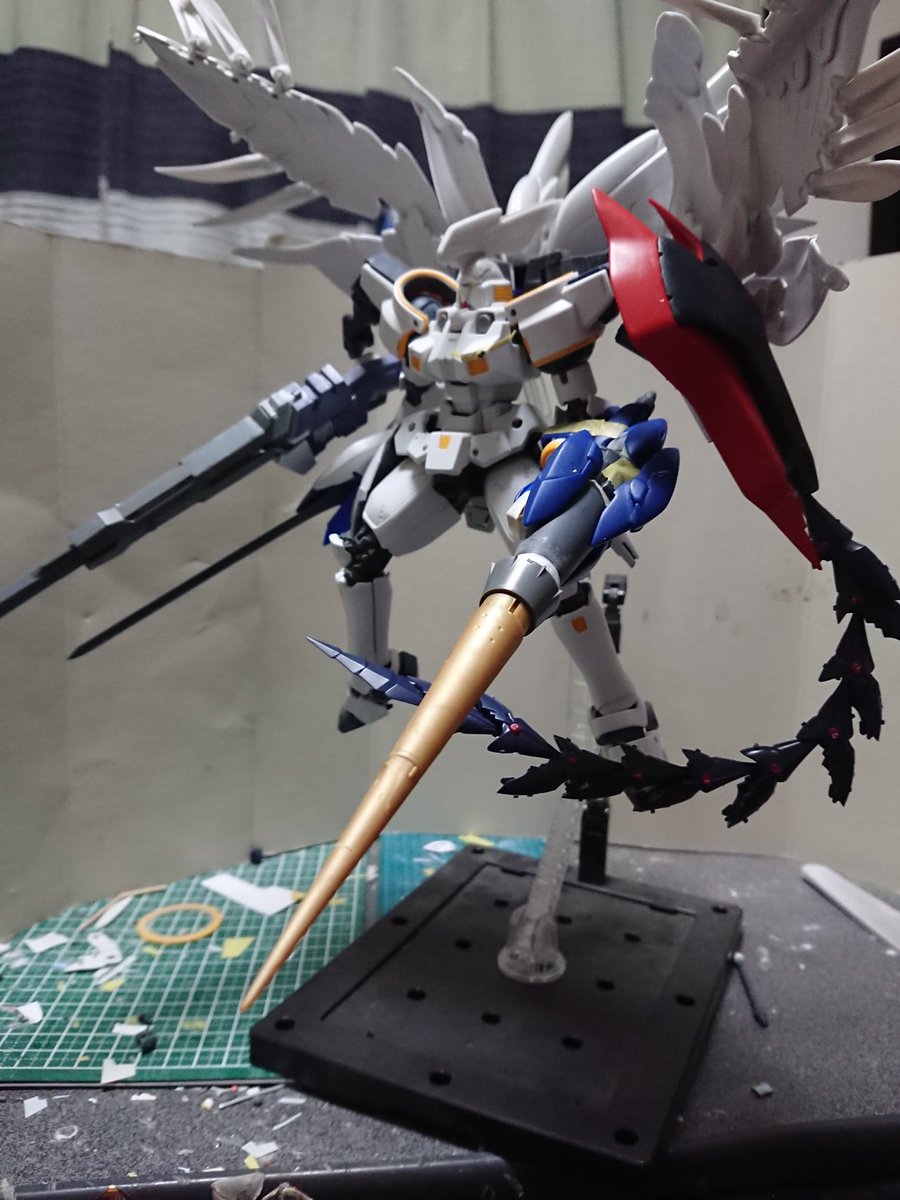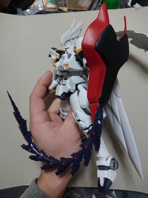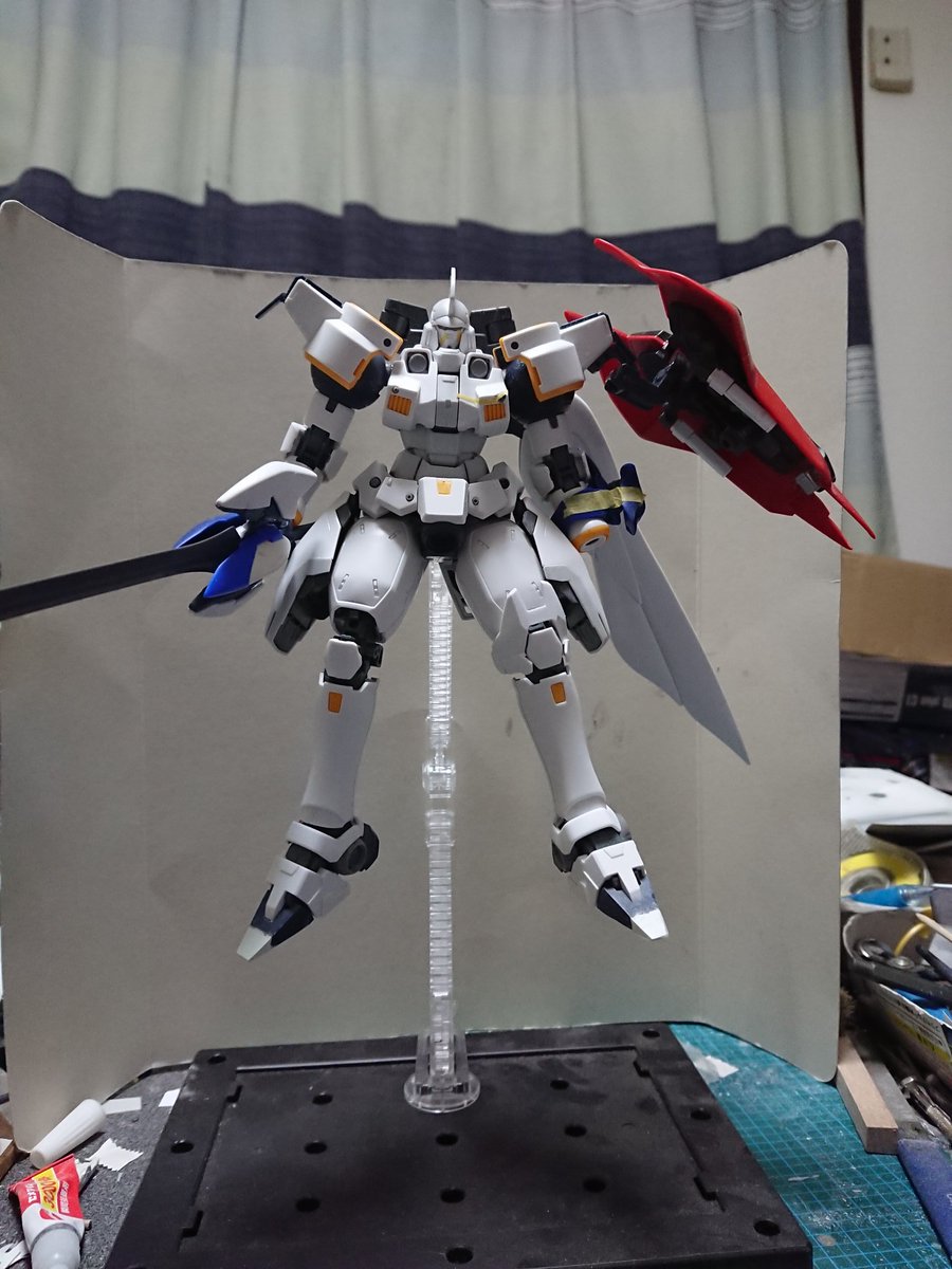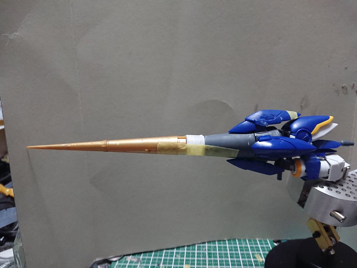 MGグフフライトタイプ 手間のかかる工作はほぼ終わったので記念(?)に一周。 まだ切り貼りするとこはありますが(-_-;) もうちょっとしたらヤスリがけタイムです… #グフフライトタイプ #ガンプラ好きと繋がりたい #ロボマニ