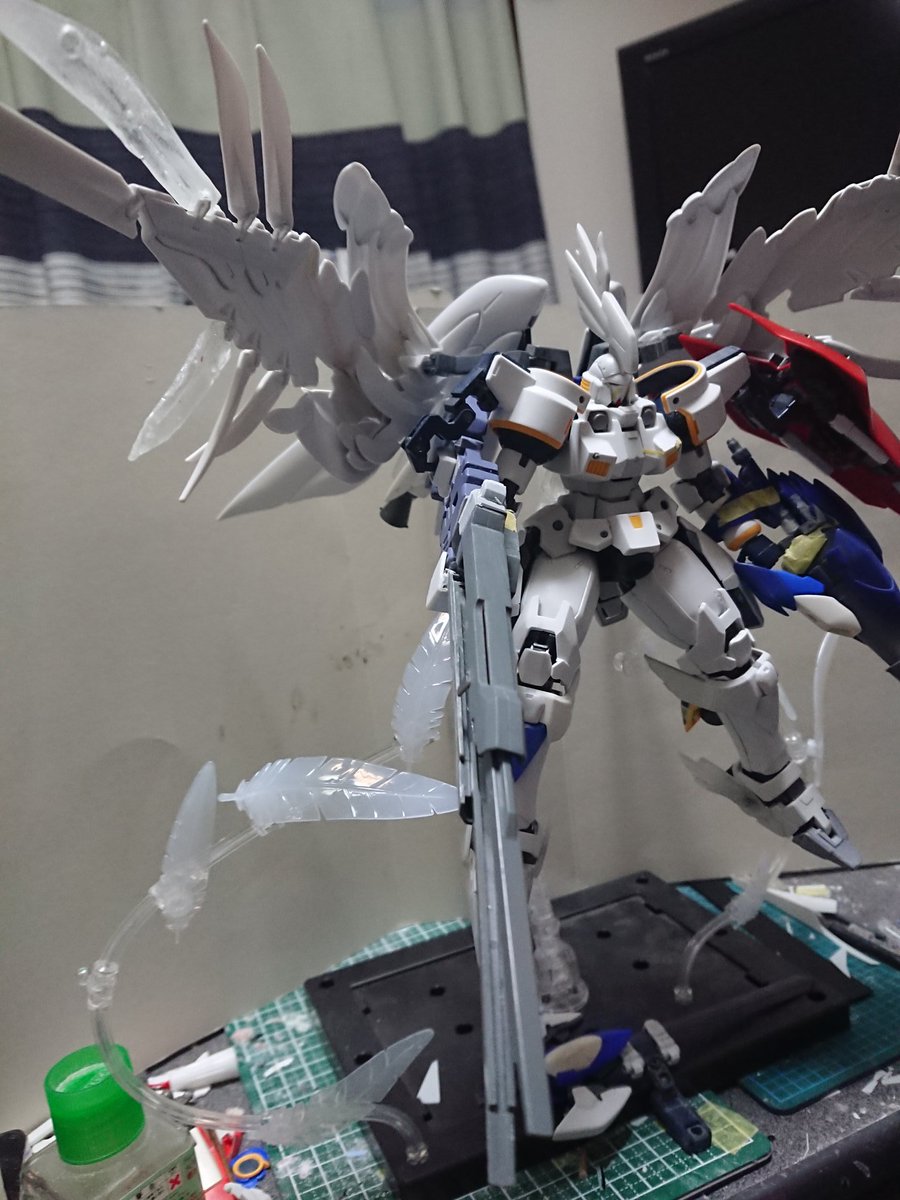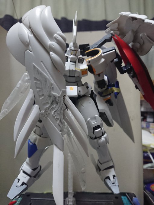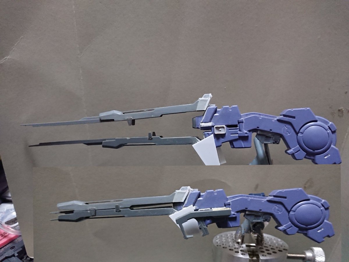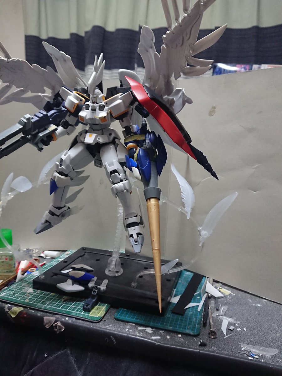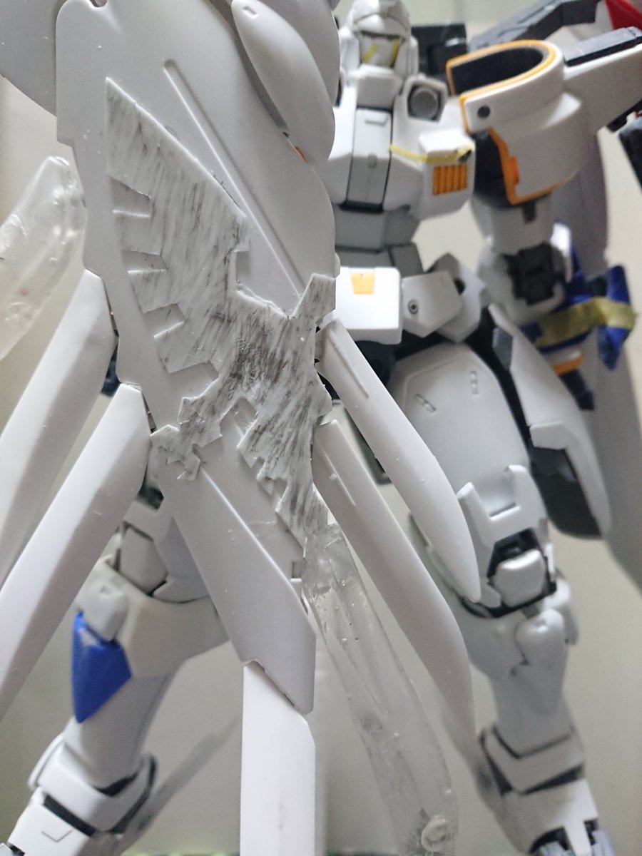 MGグフフライトタイプ 手間のかかる工作はほぼ終わったので記念(?)に一周。 まだ切り貼りするとこはありますが(-_-;) もうちょっとしたらヤスリがけタイムです… #グフフライトタイプ #ガンプラ好きと繋がりたい #ロボマニ