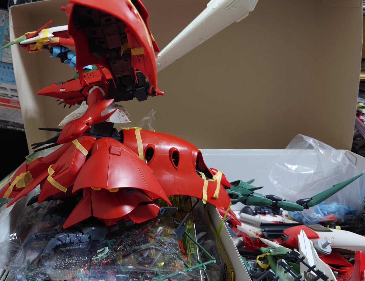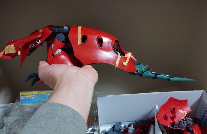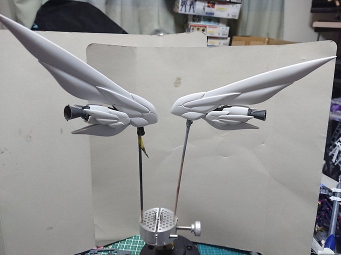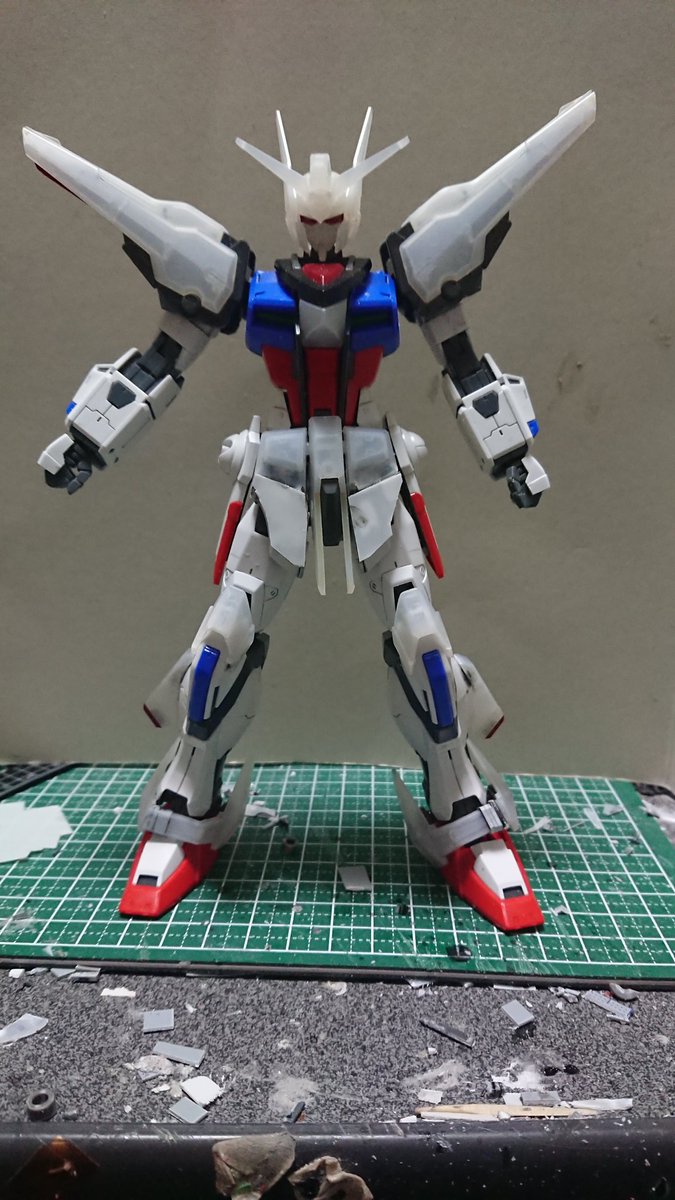 アカツキRM 久々の仮組み編 未だ名無しのストライカーパック組んでます 広げるとデカすぎ(-_-;) カラーリングこのままで良いんじゃないか説ある… #ISPWC2021 #ガンプラ好きと繋がりたい