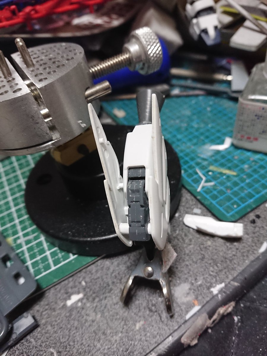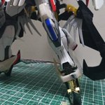 アカツキRM 仮組み編 ビルドストライクの本体に、アカツキのパーツを被せて調整してます だいたい形になったので、隙間埋めとか細かい所を整形していきます… #ガンプラ好きと繋がりたい #ISPWC2021
