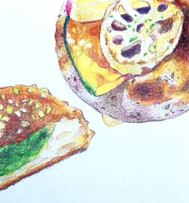 推しパン屋さんのパン #パン #色鉛筆画