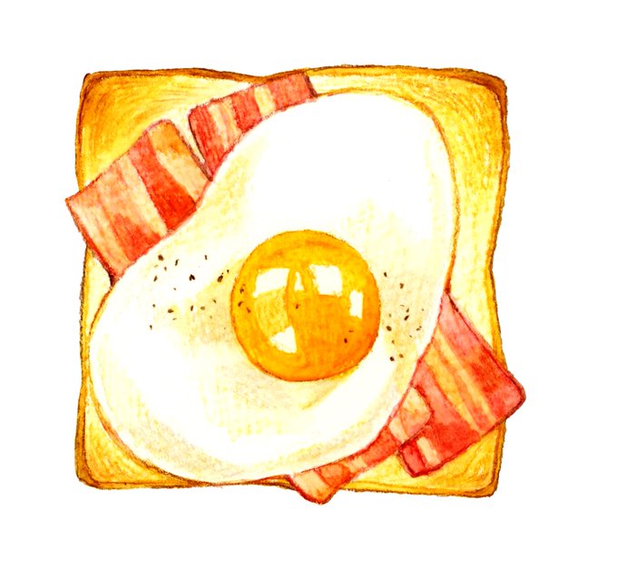目玉焼きトースト #食べ物イラスト #水彩色鉛筆