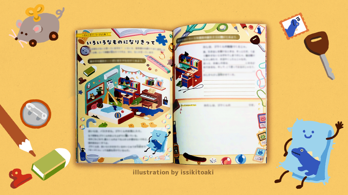 イラスト担当したページはこちら🖍️ どれも楽しく描かせていただきました 「空想作文ドリル もっと 文章を書くのが好きになる」 hon.gakken.jp/book/1130557100 👆本の詳細とネットショップのリンクはURLからご覧いただけます。ぜひチェックしてみてください