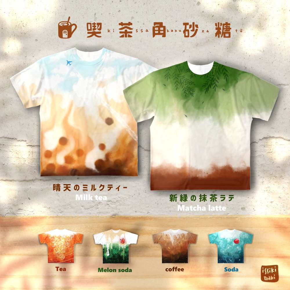 ⛱️Drink & Dessert Tシャツ🌻 タピオカミルクティ & 抹茶ラテ パフェ & かき氷 のTシャツを作りました suzuri.jp/issiki #SUZURIのTシャツセール 夏のお供にいかがでしょうか⛅️