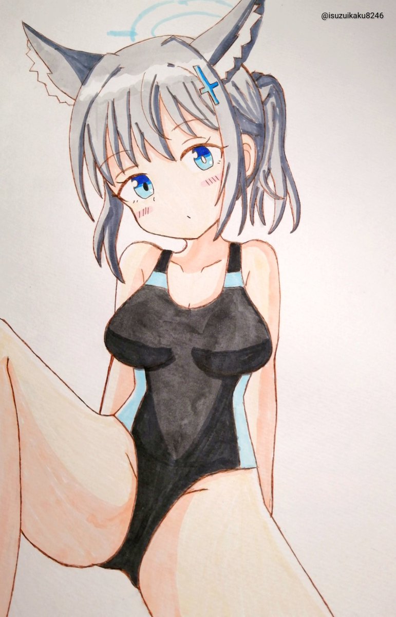 #ブルアカ #イラスト 🌊🩱水着シロコちゃん再掲🩱🌊