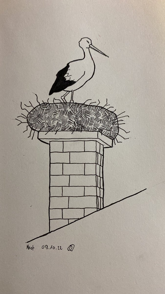 Inktober Day 9 „Nest“ #inktober2022 #Inktober #nest #stork #inktober2022day9