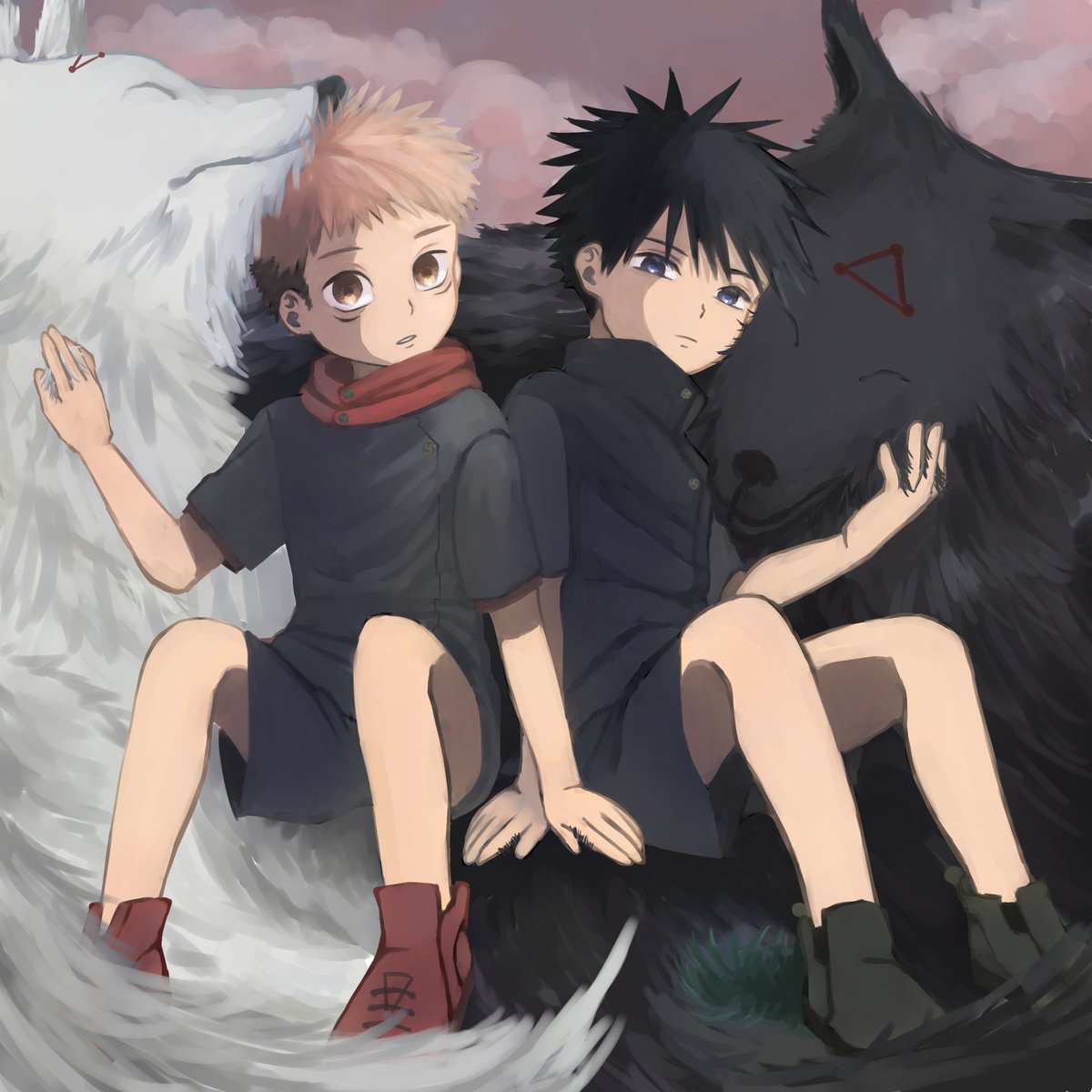 #呪術廻戦ファンアート これくらいの年齢の男の子に大きい狼ってド性癖なんだけど同じ方います?? ショタ悠二と恵描いてめっちゃ満足…