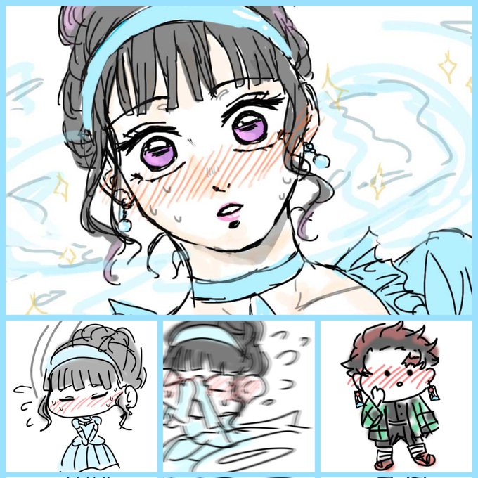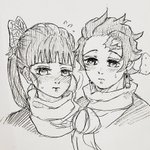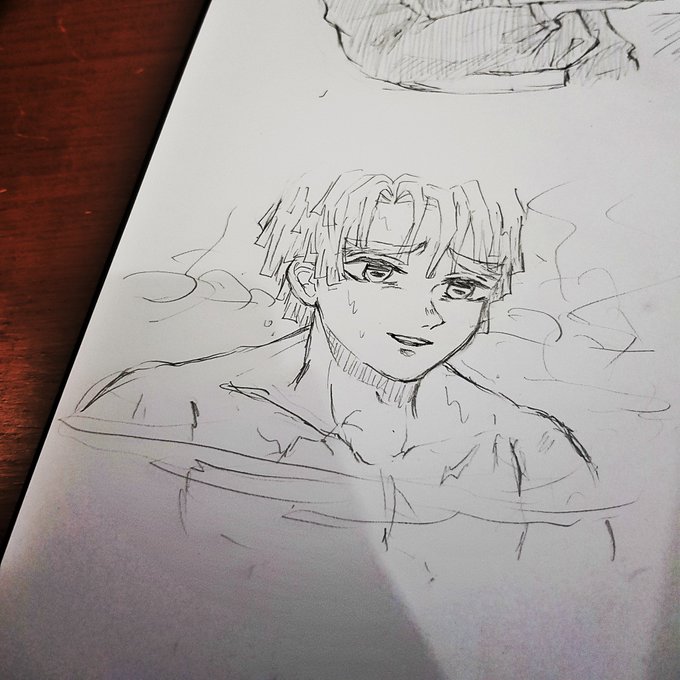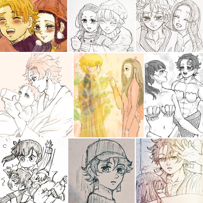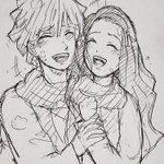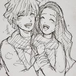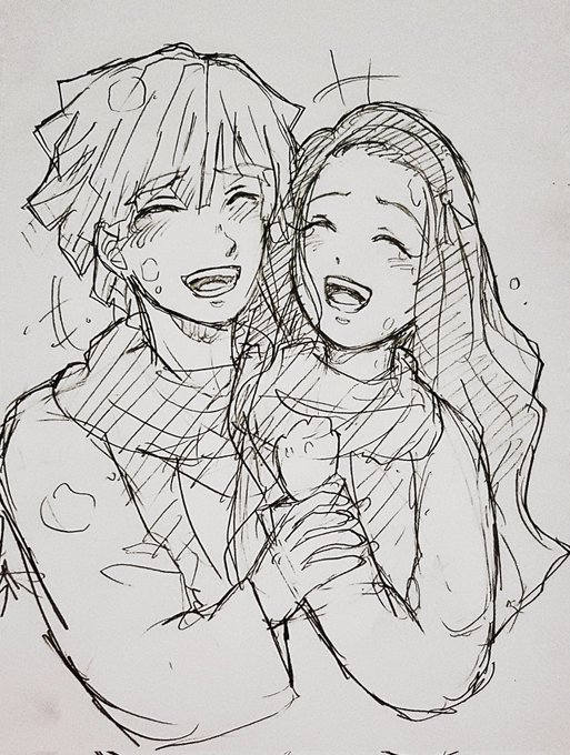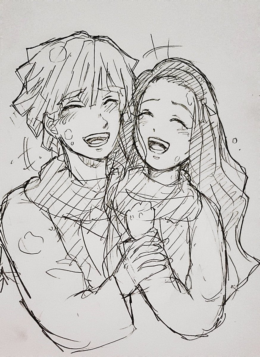 たんかなrkgk また鉛筆画♪ 🎴🌸は結婚しているが、🎴🌸は再び最終選別の服を着ている(懐かしさ🤭)🌸は🎴が左腕を上げるのを手伝う......👍 漫画の表紙の1巻のこのポーズかっこいいと思う😳