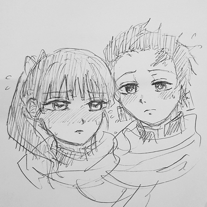 27 189 たんかなrkgk また鉛筆画♪ 🎴🌸は結婚しているが、🎴🌸は再び最終選別の服を着ている(懐かしさ🤭)🌸は🎴が左腕を上げるのを手伝う......👍 漫画の表紙の1巻のこのポーズかっこいいと思う😳 22/09/07 00:46