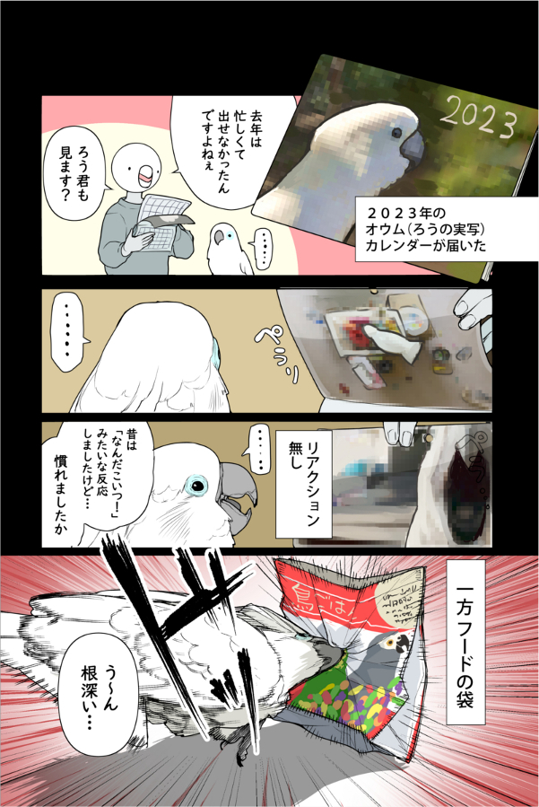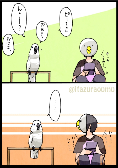 252 1831 ふんわりオウム4コマ 23/08/03 18:33