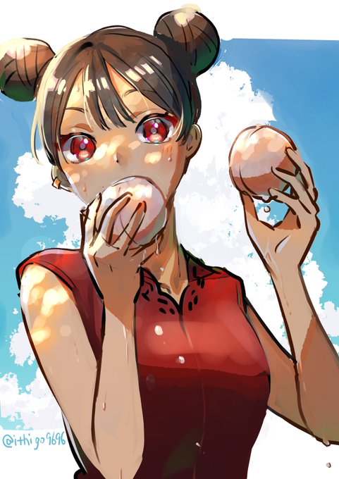 2 10 桃、食べる?🍑 #イラスト #落書き 22/08/17 21:51