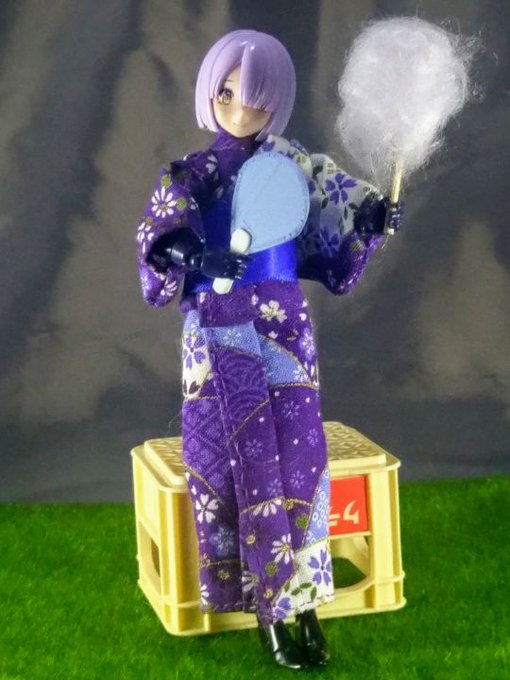 夏なので我が家のエクスキューショナーに浴衣(+α)作ったりました。浴衣にしては柄がちょっと大仰だったかもしれない #メガミデバイス