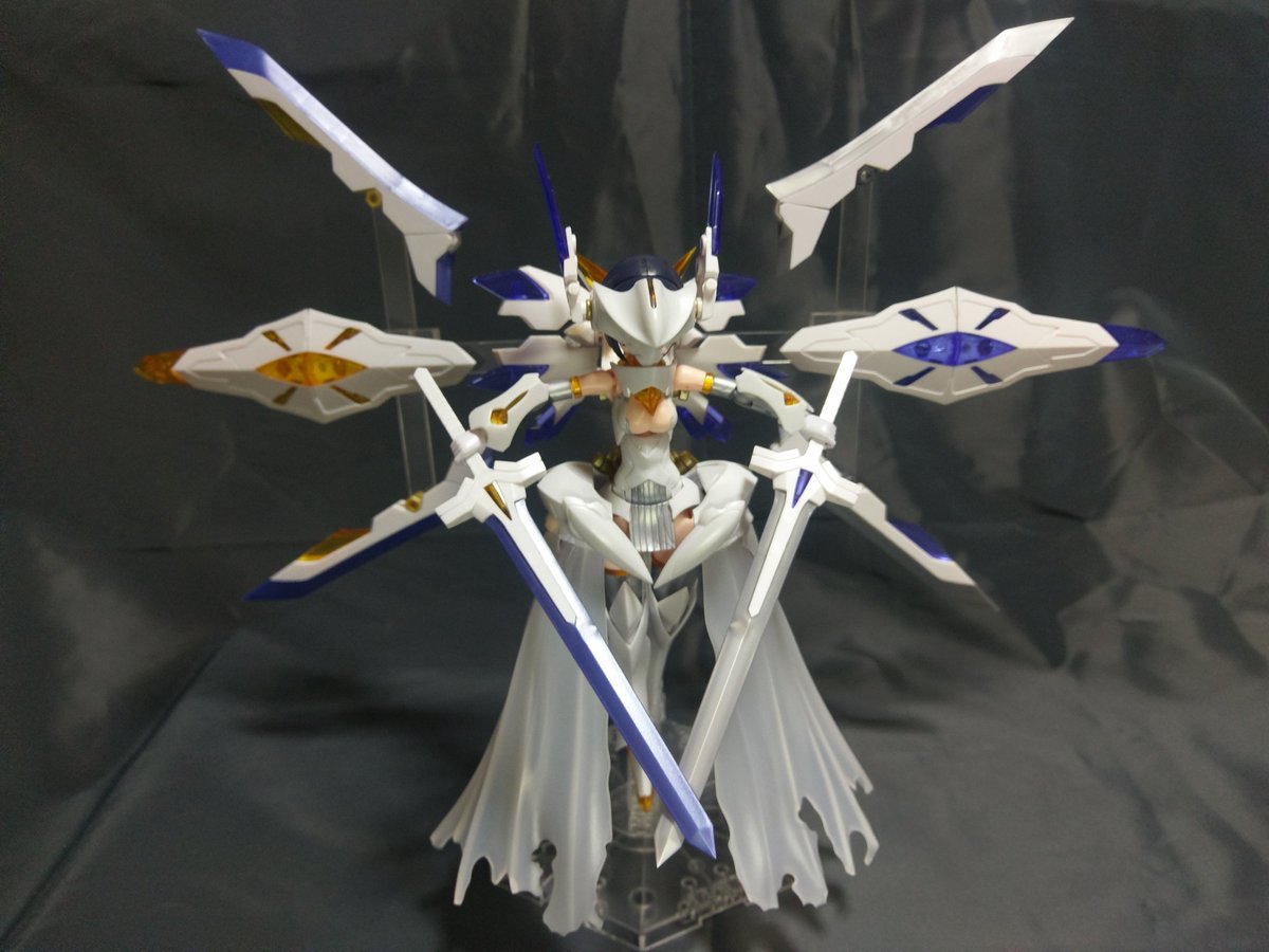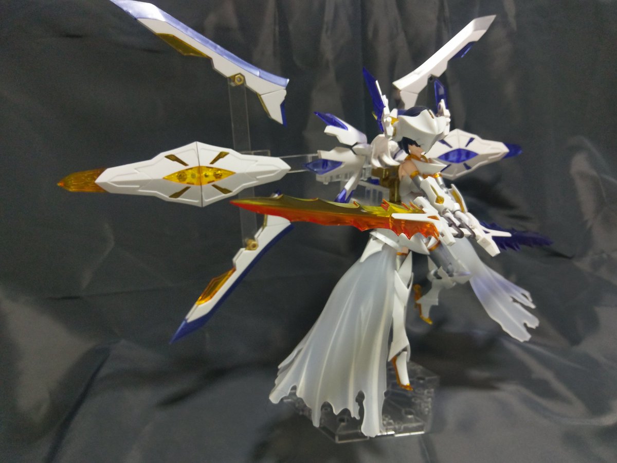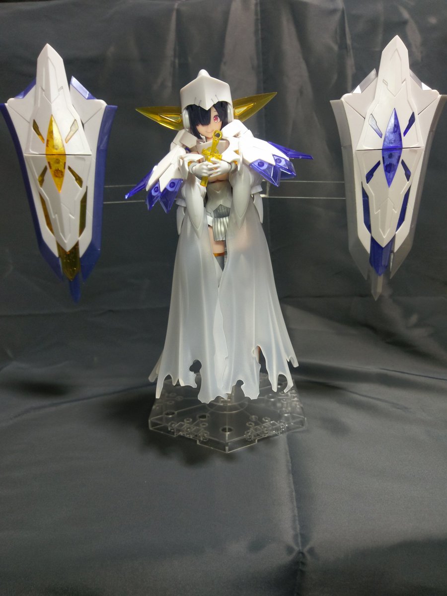 エクスキューショナーBRIDEにエクスアーマーEとナイトマスターソードを追加装備しました。手に持つ十字架で盾を操るドレスモードと背部にナイトマスターソードを翼として展開するヴァルキリーモード #メガミデバイス