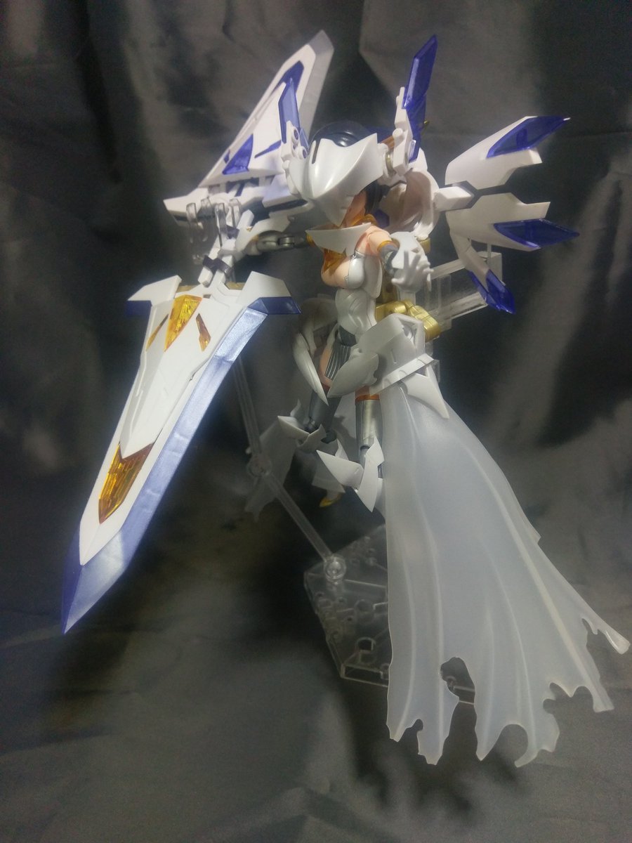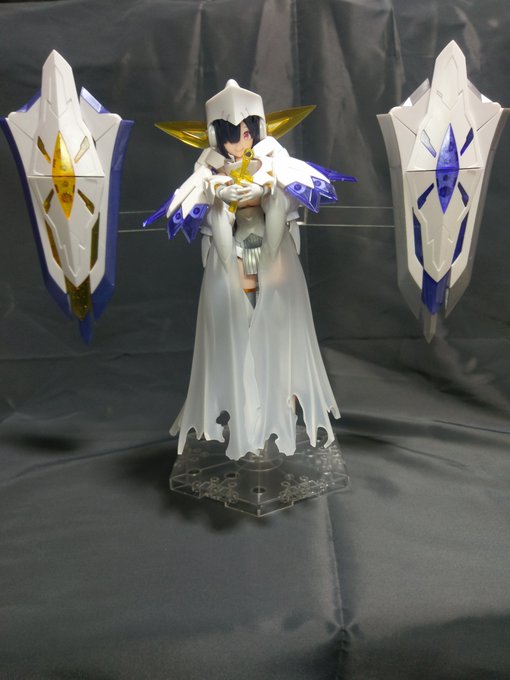 21 87 エクスキューショナーBRIDEにエクスアーマーEとナイトマスターソードを追加装備しました。手に持つ十字架で盾を操るドレスモードと背部にナイトマスターソードを翼として展開するヴァルキリーモード #メガミデバイス 22/01/27 20:50