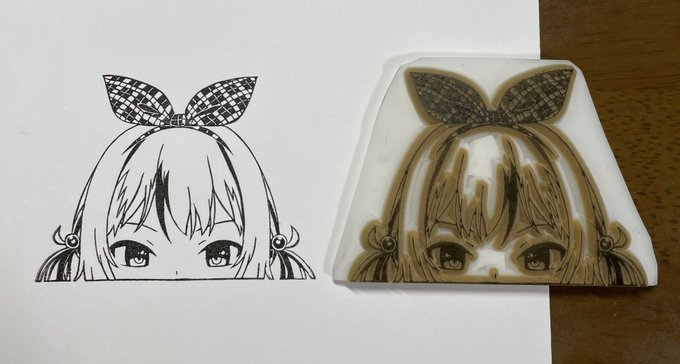 月見フォカッチャのCMのすいちゃん彫った💪 チャームポイントの星のハイライトが上手く彫れたからキラキラお目目になったと思う☺️ #消しゴムはんこ #星街すいせい #ほしまちぎゃらりー 動画もあるよ↓ youtu.be/lwLX6_NV4dU