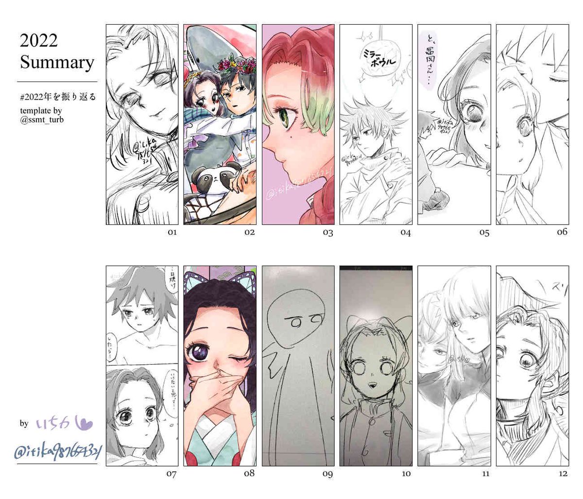 #2022年を振り返る 何だかんだぎゆしの漫画2つ描いたんだな〜! 時々別ジャンルとか入ってるけどごめんwww 9月のとみーは丸ごと消したネームなので幻のとみーです(?)