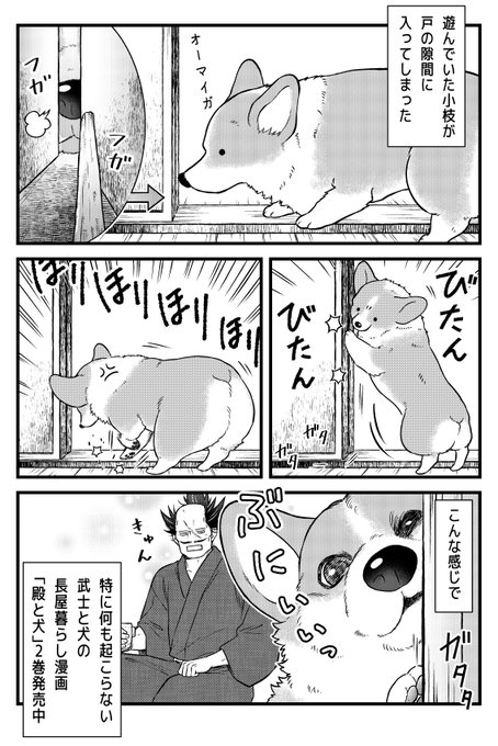今月は「殿と犬」最新話の更新がお休みです。代わりといってはなんですが4コマ描きました! あと1巻発売時に上げた4コマも再掲ですがどうぞ🐶✨ twitter.com/tono_to_inu/st…