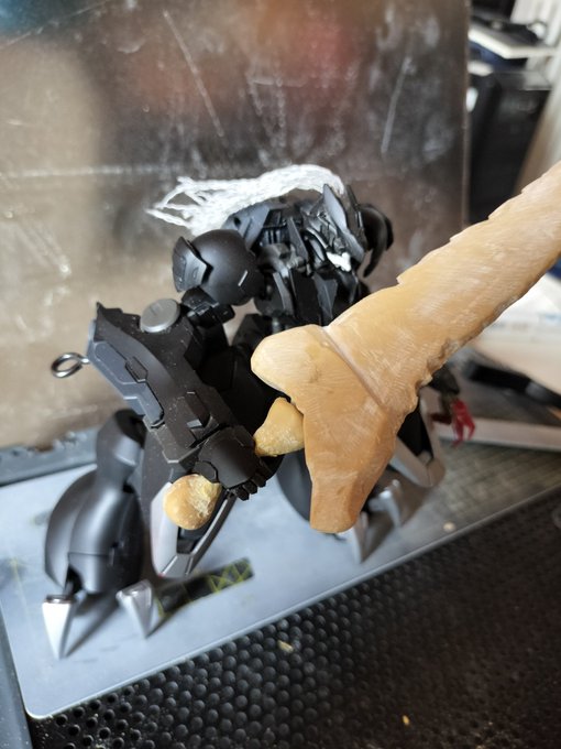 制作中 武器持たせること成功 #ガンプラ好きな人と繋がりたい #ガンプラ #ガンプラはどんな自由な発想で作ってもいいんだ #ガンプラの画像を貼るとRTされると聞いて