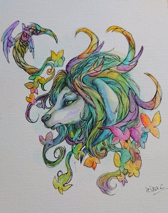 0 2 なんか気に入らなくて没にしたイラストですが、色を入れたら良い感じになるかと挑戦中 #wiq #水彩画 #獣耳 22/08/07 09:50