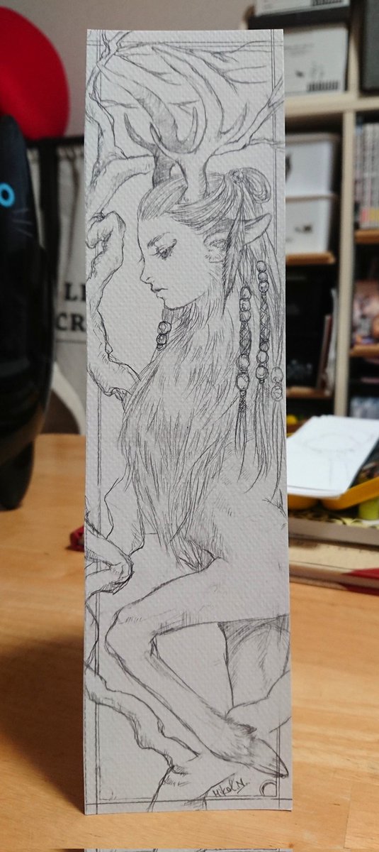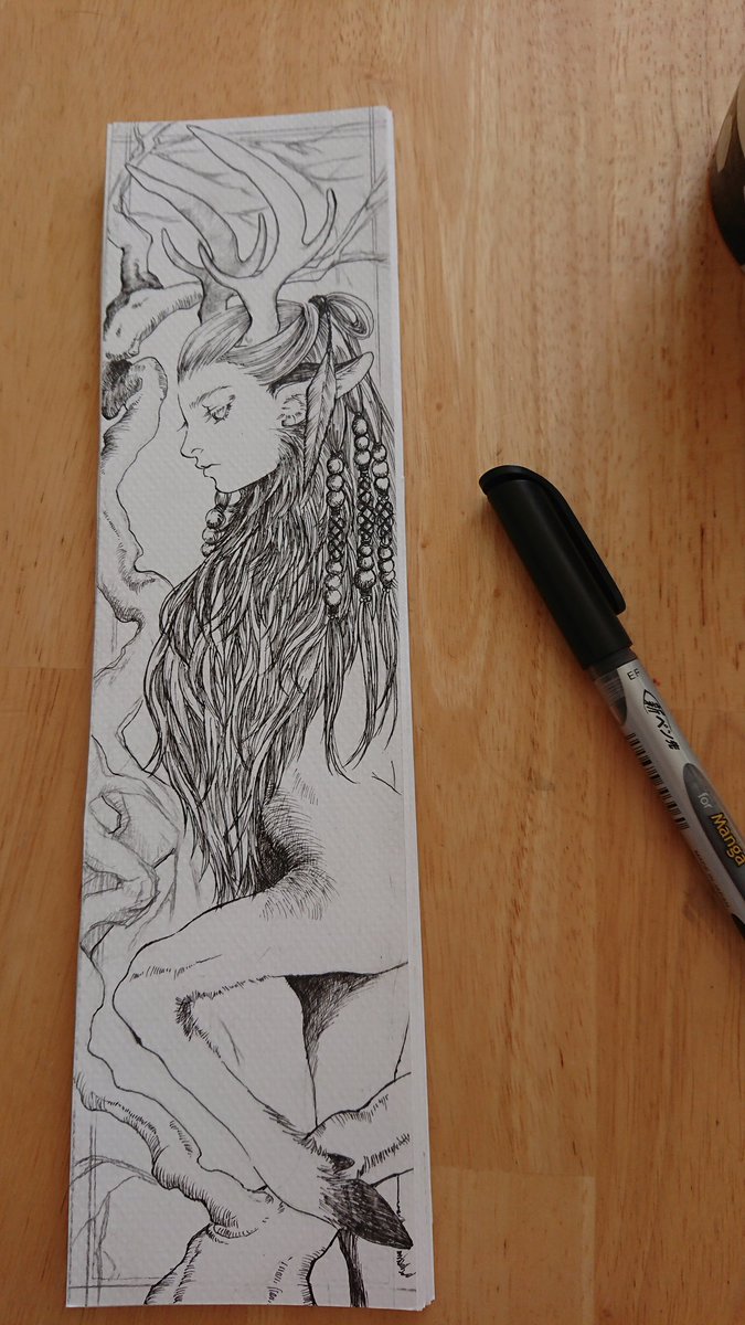 人面鹿下書き中 栞サイズがちょっとサイズオーバーしてしまった。 #アナログイラスト #イラスト