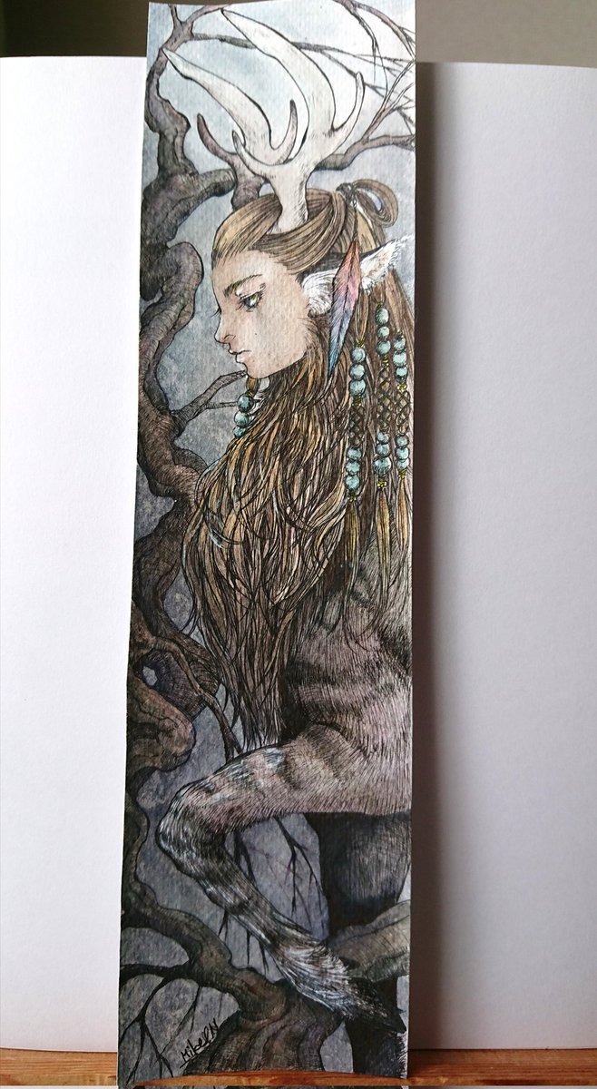 2 29 人面鹿下書き中 栞サイズがちょっとサイズオーバーしてしまった。 #アナログイラスト #イラスト 22/02/21 15:52
