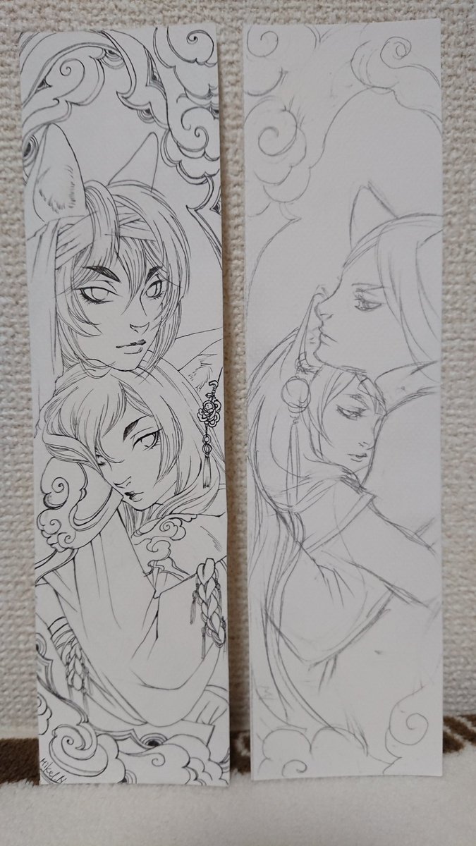 ペン入れまでしたけど、なんか気に入らなくて書き直し中。 右、書き直しラフ。 #アナログ絵 #ペン画