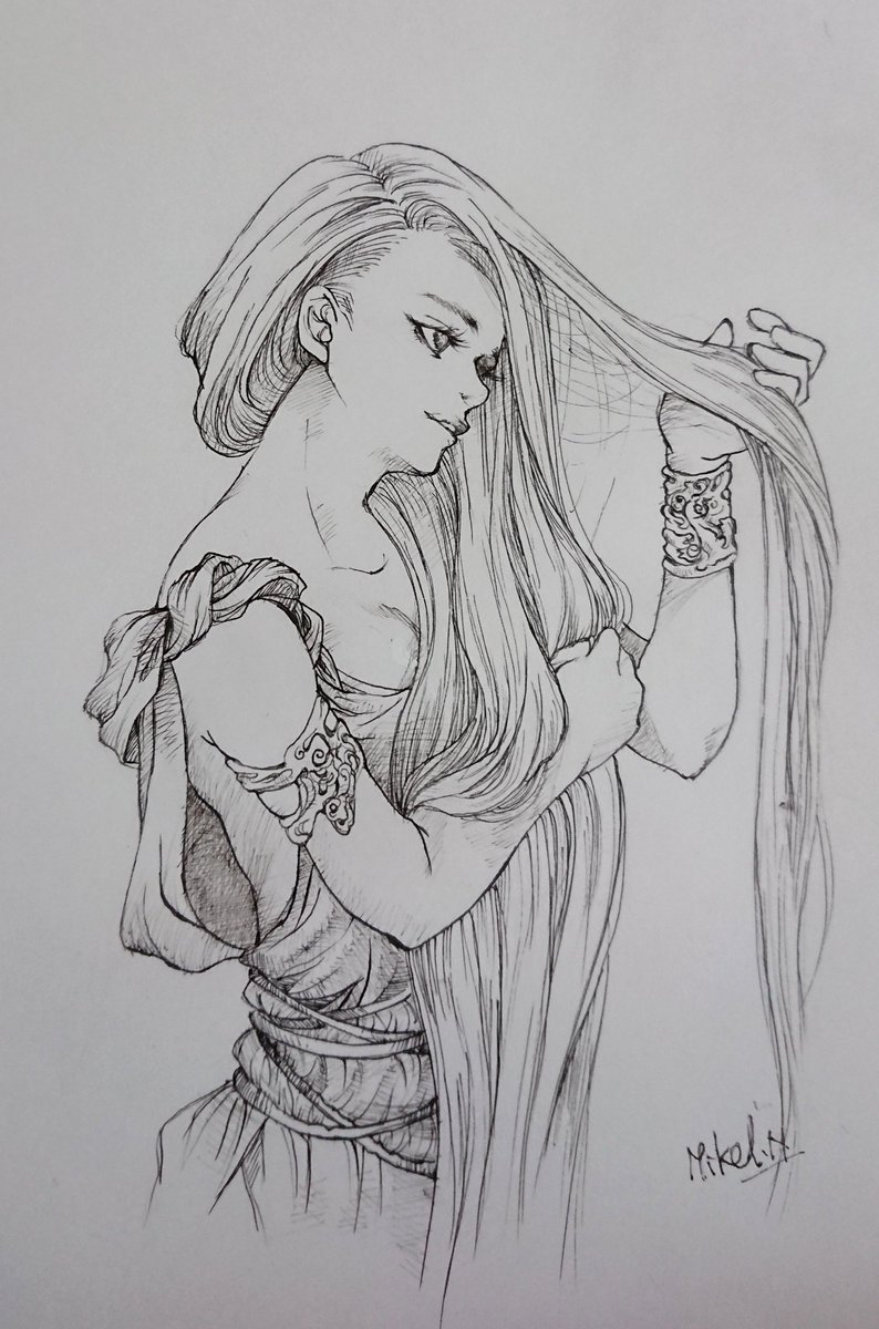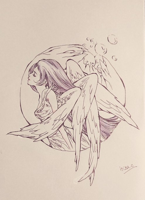 0 2 ペン入れまでしたけど、なんか気に入らなくて書き直し中。 右、書き直しラフ。 #アナログ絵 #ペン画 22/03/20 07:57