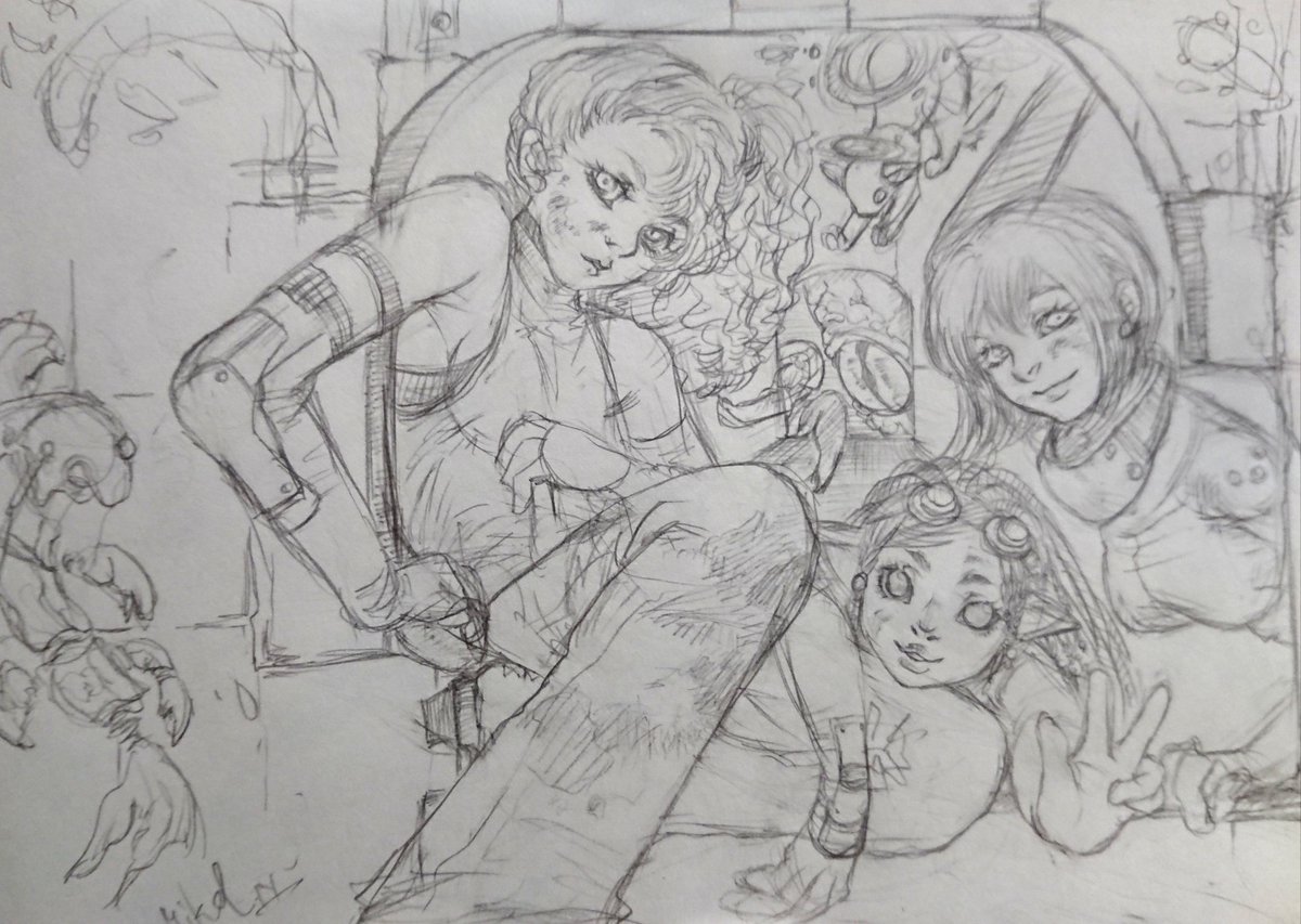 0 7 ペン入れする前に、また下書きが溜まる不思議。 #アナログ絵 #イラスト 22/06/13 18:33