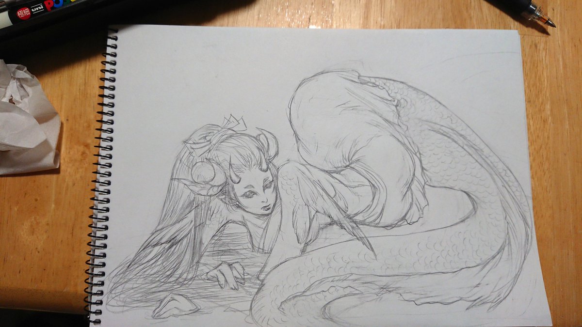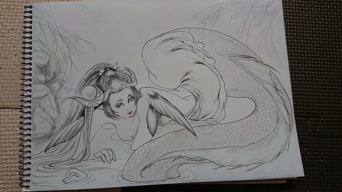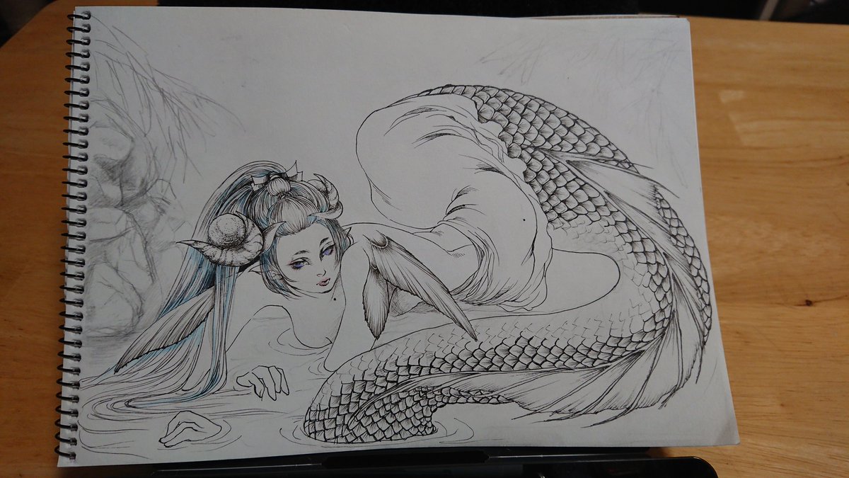途中経過…もう鱗描きたくない(白目 #アナログ絵 #イラスト #アナログ絵を流してアナログ民を増やそう