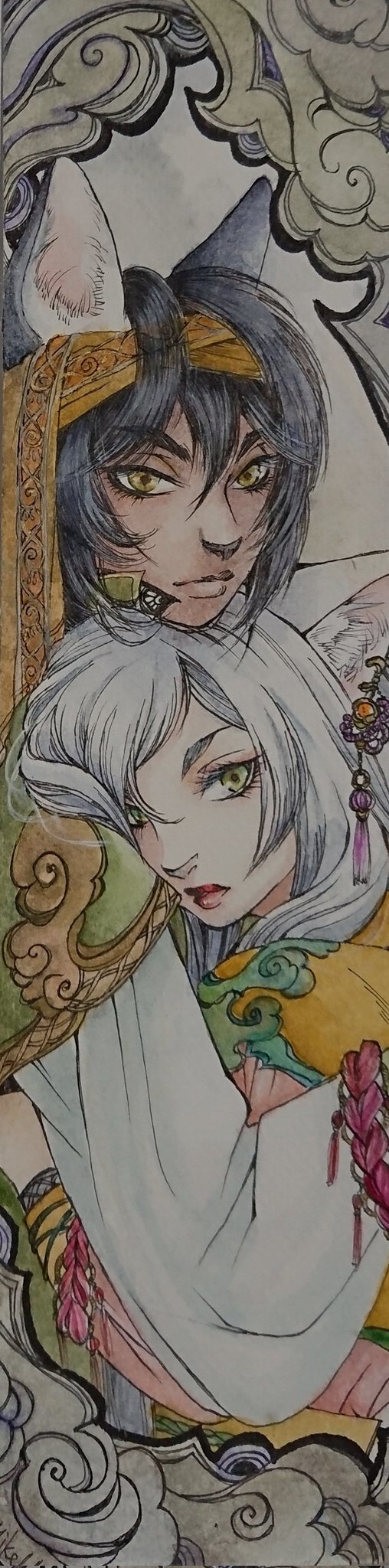 完成!!(*ノ゚Д゚)八(゚Д゚*)ノィェーィ!獣耳兄妹! #水彩画 #イラスト #猫耳