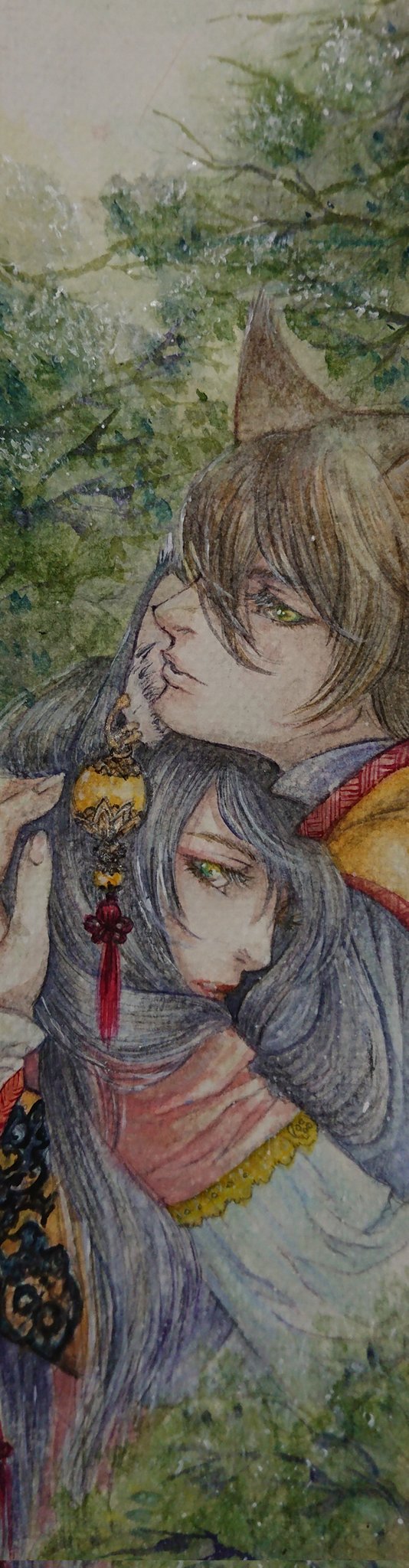 初期獣耳兄妹完成 #水彩画 #イラスト #アナログ絵