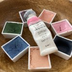 #4月になったのでフォロワーさんに自己紹介しようぜ #水彩 塗り広げるのが楽しくワクワクする絵具を目指し、キラキラや分離色、天然鉱石の絵具を練っています。 絵具が創作意欲アップや着想のお手伝いになり、作品作りのお役に立てたら嬉しいです☺️