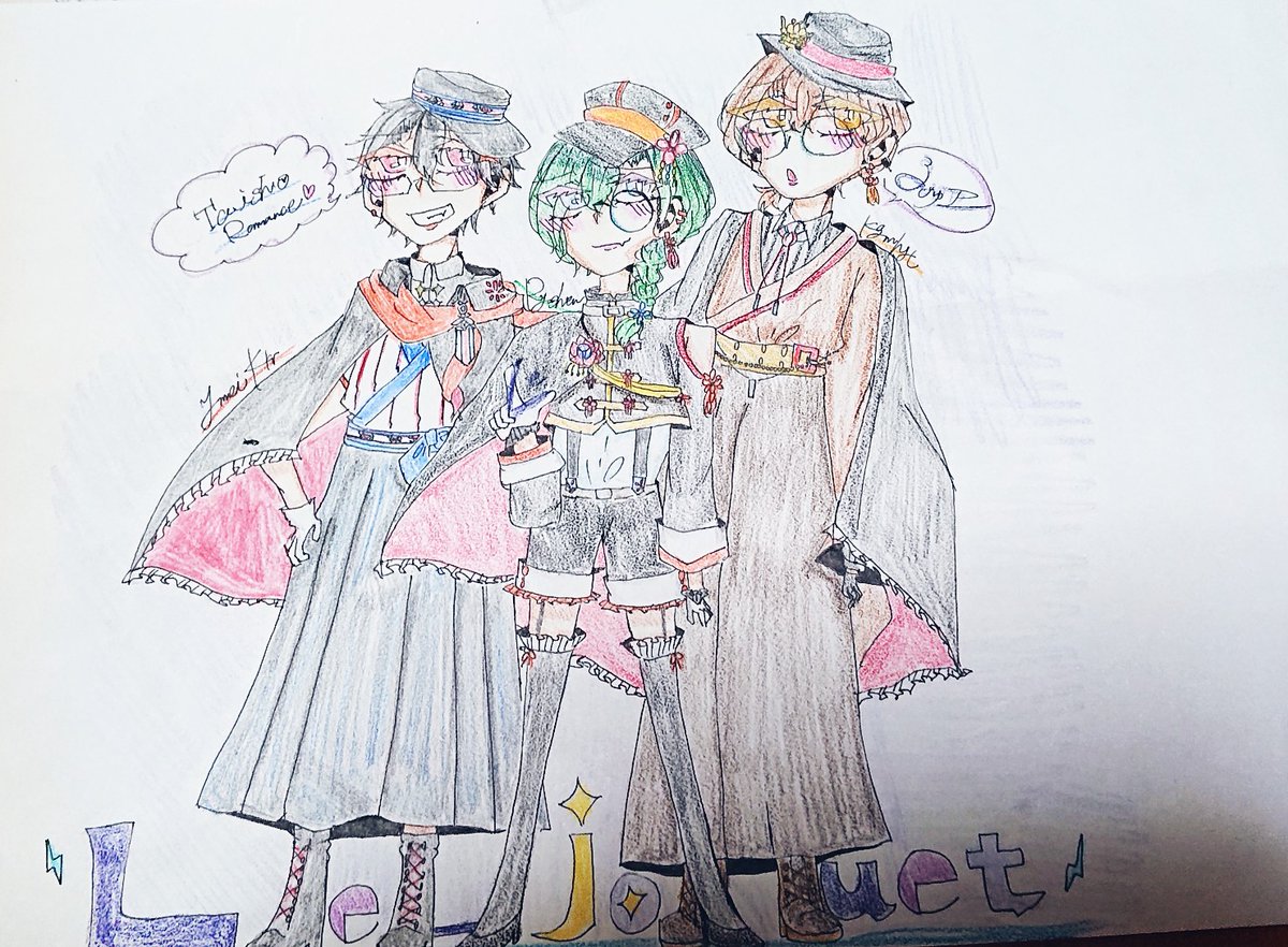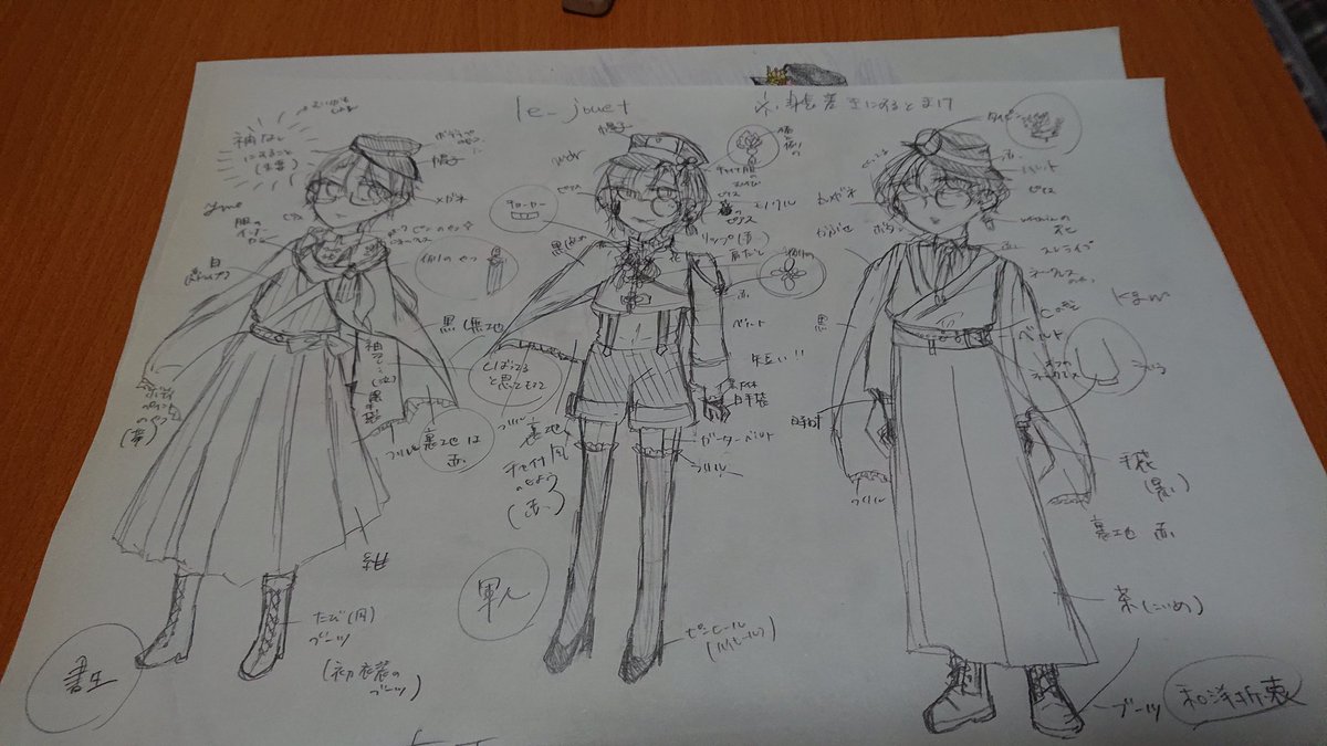 るじゅえ大正ロマン〜〜〜〜 衣装考えるのたのし〜〜〜〜 基本最初の衣装ベースで考えてます! ゆめおから書生、軍人、和洋折衷ベース #le_jouet #絵かける #緑仙はやく見ろ #加画美