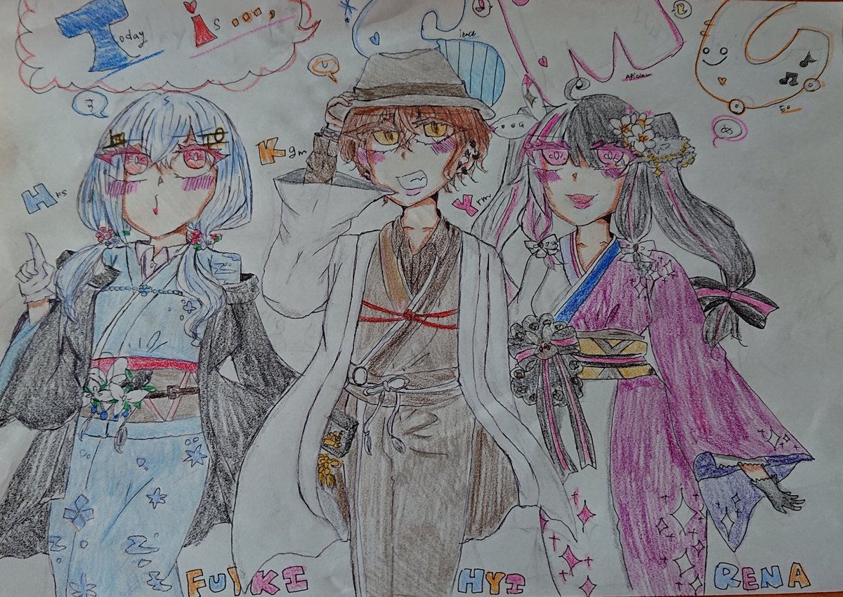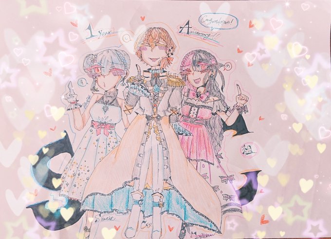 #加画美 #れなの鳥っくあーと #はかせレポート #すめし2周年 SMC組二周年おめでとうございます! いつも三人に元気をもらっています! 今年もこうしてお祝いできることに嬉しく思い、今年もオリ衣装を描きました! これからもお三方の健康と幸せを祈って。 おめでとうございます!!!!!!