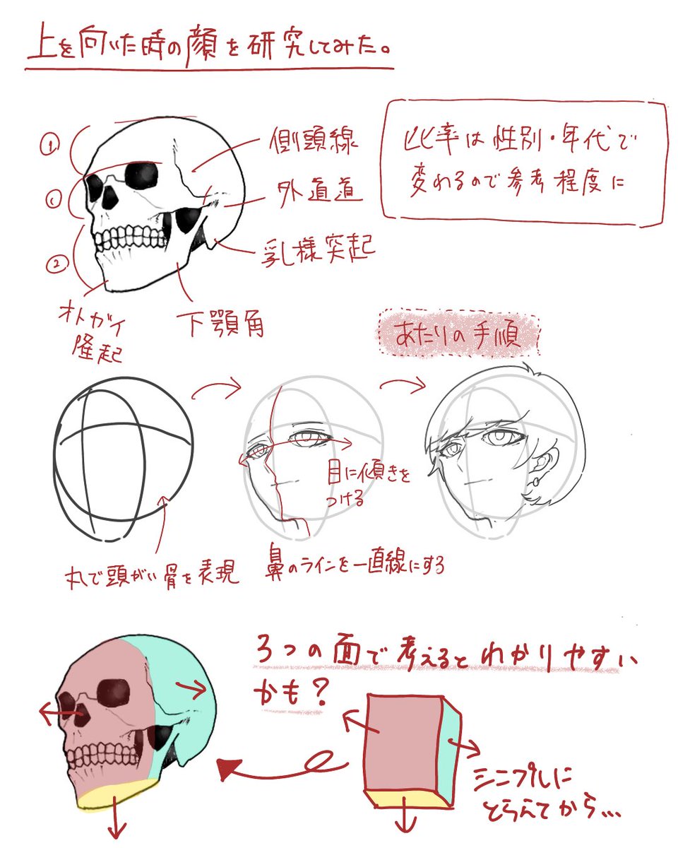 斜め上を向いた人の顔を研究してみたよ