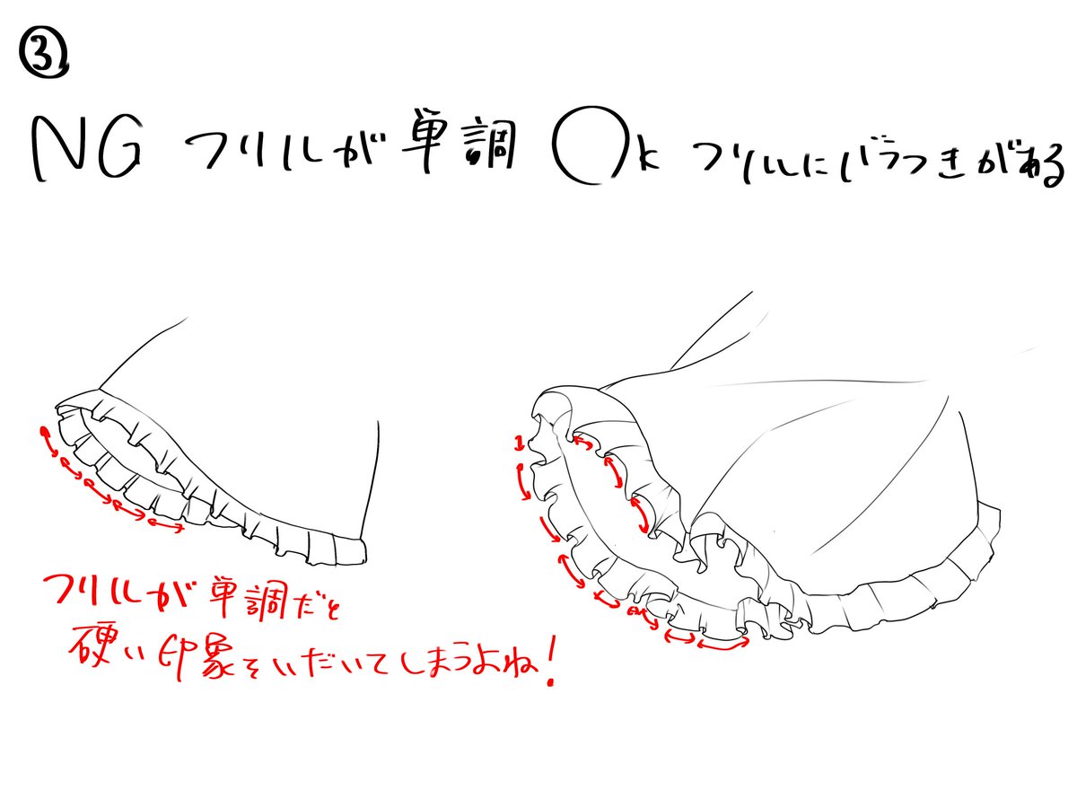 23 229 フリルの描き方で好評だったものをまとめておきました! 23/03/23 16:00