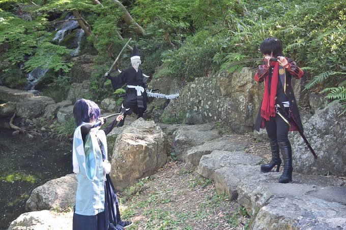 5 13 【コスプレ/刀剣乱舞】 _黄昏の開戦 大和守安定:いと 加州清光:璃桜(@riou_17 ) 敵太刀:遼翔さん(@haruto__cos ) 18/06/20 22:28