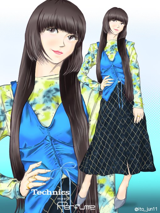 #2023年自分が選ぶ今年上半期の4枚 実写寄りや既存作のオマージュ等… 色々描かせて貰いましたけど、 自分の絵柄丸出しな絵はやっぱり 思い入れも強いし描いててとても 楽しかったです┏○ペコッ #Perfume_fanart #イラスト